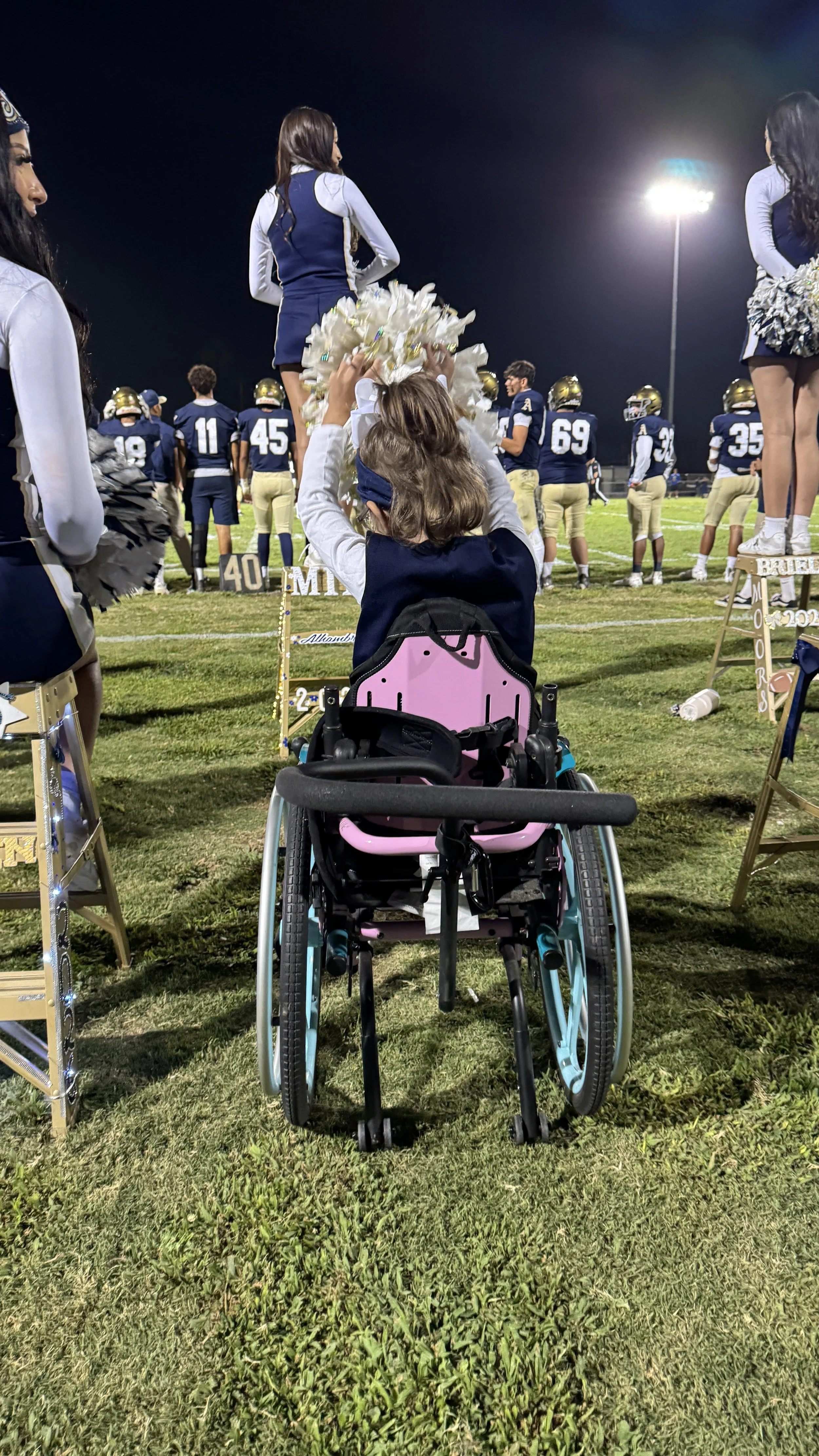 There are few things Gracie loves more than going to her Dada’s football games and cheering with the cheerleaders. Our world has blended with the football program because of Coach Mack’s passion and love for the team. Gracie loves going to practices, playing blocks with the guys, and coaching the players. We see how the strength of Gracie is powerful and reaches everyone who witnesses her. We hope that if you’re able to buy a shirt or even if you’re not, that you’ll tell people about Gracie and be a part of building communities that are inclusive of people with disabilities. Thank you for loving our girl!